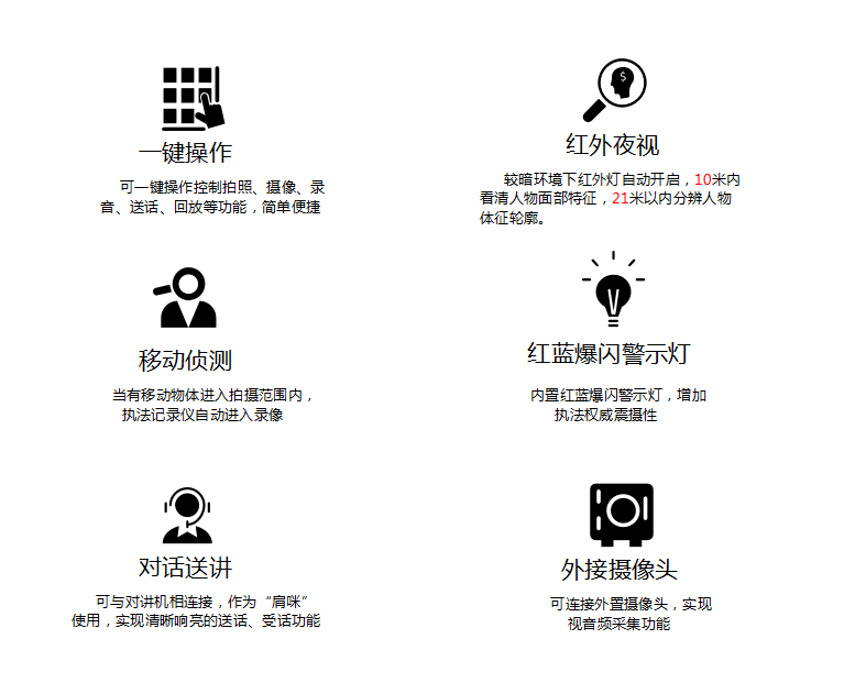 8040威·尼斯官网DSJ-200F 执法仪(法院/政府/城管)拍摄像素高达5000万,广角镜头137,拍摄画面精细而全面,大容量电池支持陆续在工作12小时不断电